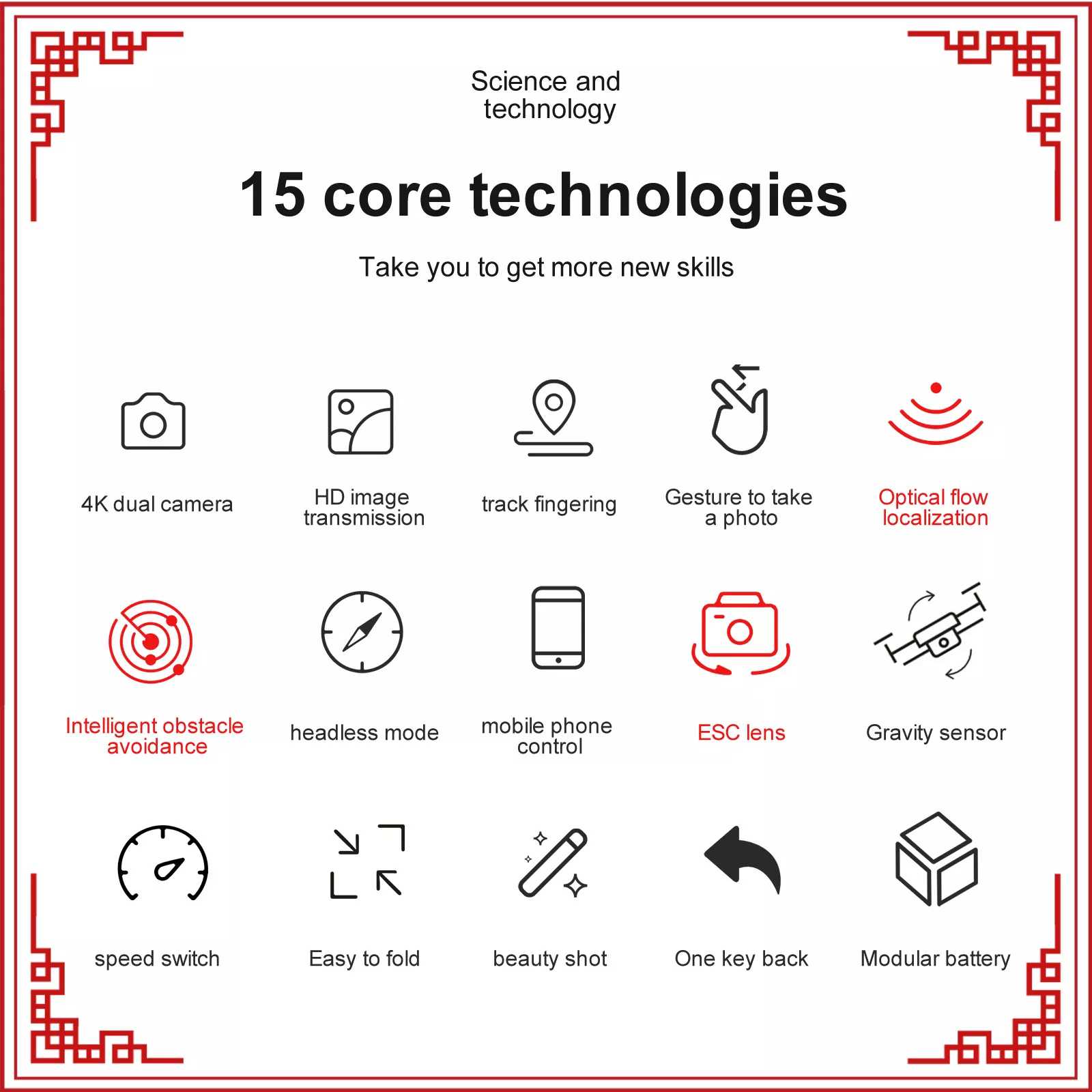 It is different from common 6- and 4-axle aircraft. Our drone uses the most advanced 9-axis gyroscope, four-way obstacle detection, and a combined 12km 1080p O3 image transmission system! This makes our drones more wind resistant, and more stable in flight, and offers a safer, smarter, and smoother flying experience.